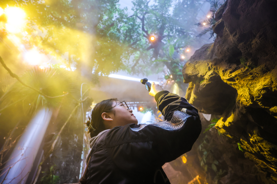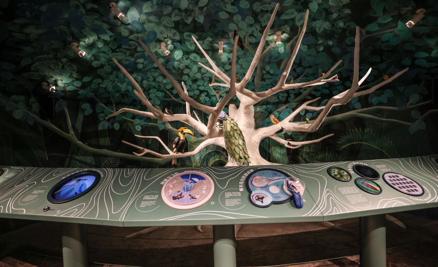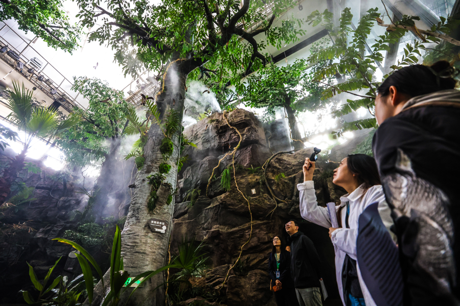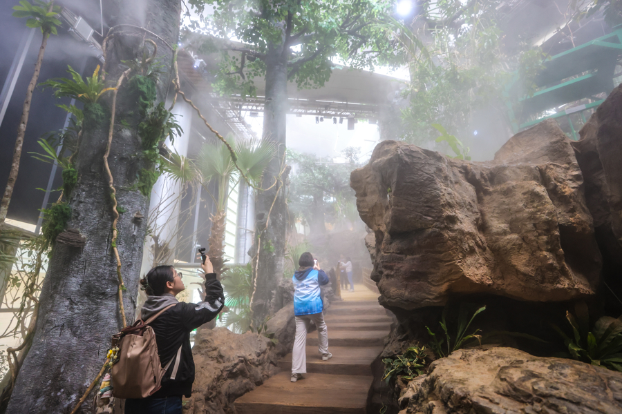 全新升级的“雨林秘境”展区面积超3000平方米,为馆内最大常设展区。展区围绕科技视角下的自然主题,打造“雨林纵览”“魅力雨林”“雨林之家”“雨林故事”四大板块,通过沉浸式环境与互动场景,让观众在体验雨林生态的同时,了解科学发现过程,思考人与自然的关系。