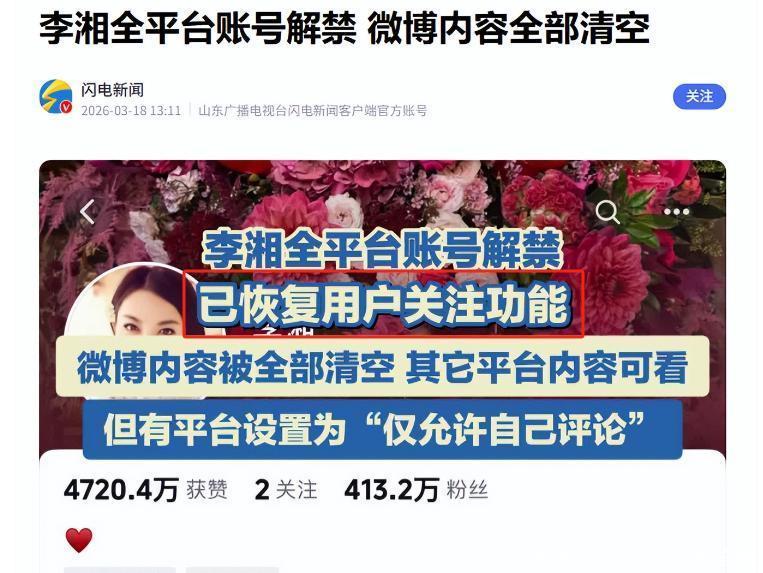 然而,面对账号被禁,李湘却保持沉默,不做回应。