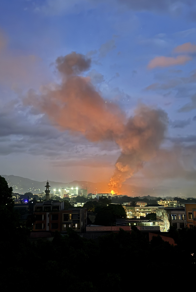 3月31日傍晚,布隆迪经济首都布琼布拉传出持续爆炸声,火光和浓烟升上天空。 新华社发