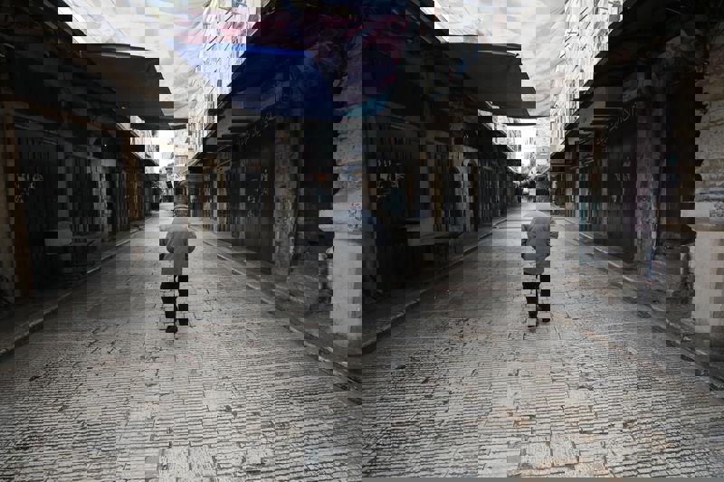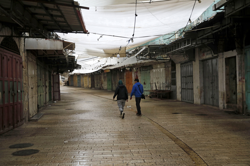 4月1日,在约旦河西岸城市希伯伦,行人经过关闭的店铺。 新华社发(马蒙·沃兹沃兹摄)