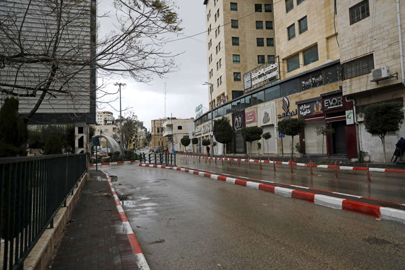 这是4月1日在约旦河西岸北部城市纳布卢斯拍摄的街上关闭的店铺。 新华社发(尼达尔·艾仕塔耶摄)