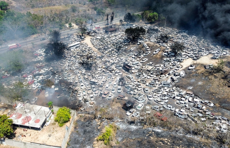 3月31日,据墨西哥格雷罗州当地民防和消防部门统计,约有400辆汽车被野火烧毁。