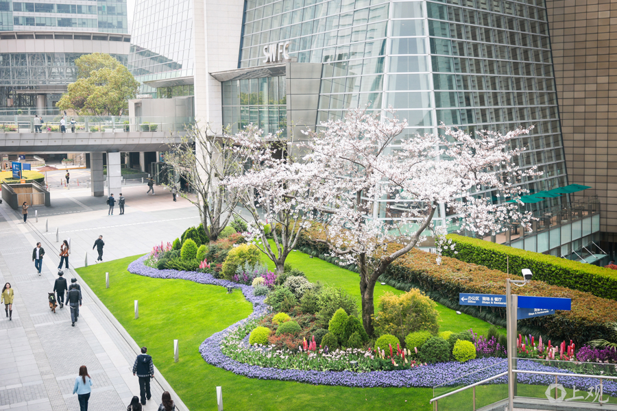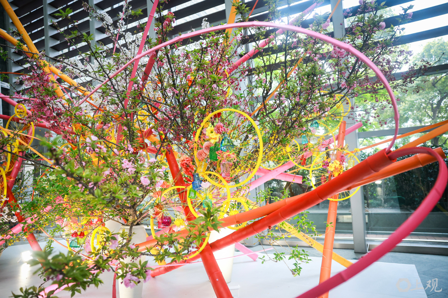 与此同时,环球金融中心一楼大厅内花道艺术家吉元烨子的大型装置作品《春之喜悦》开展。