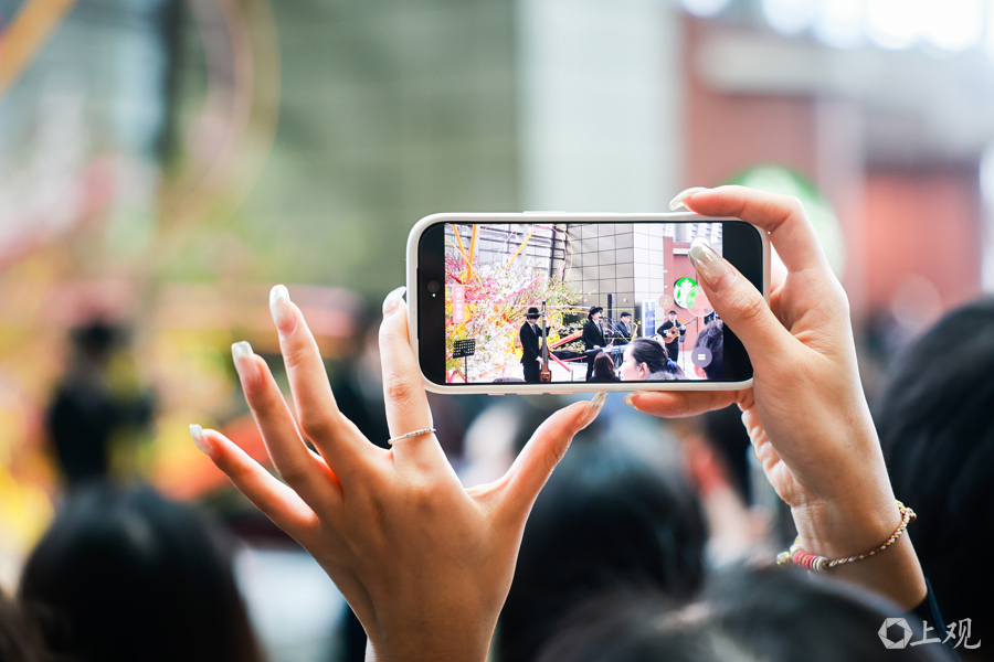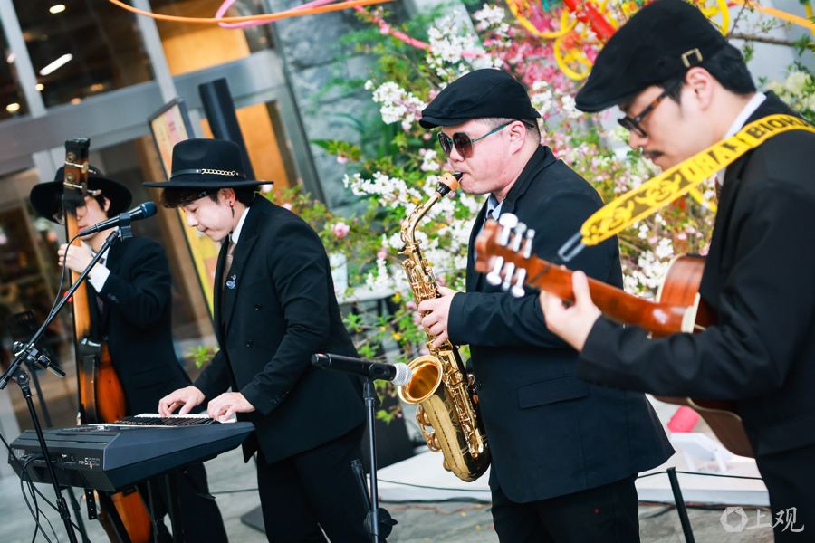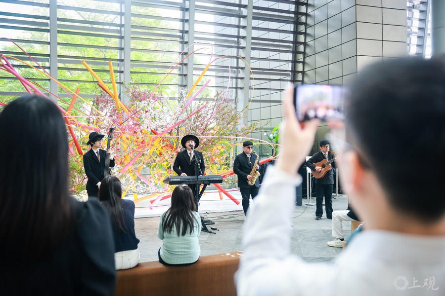 花影与乐声交织,绘就了一幅都市中心的立体春景图。