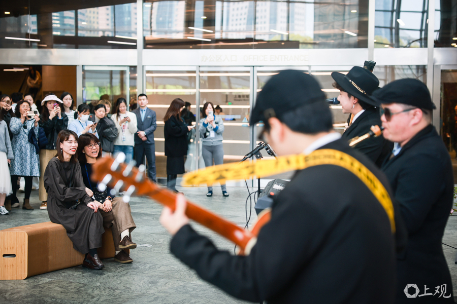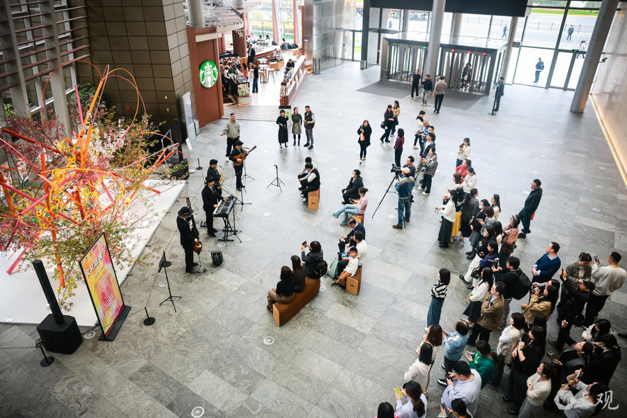 作为“春日唤醒计划”活动之一,甜蜜花园乐队用悠扬旋律为忙碌的都市人送去春日柔情,营造了惬意的午间时光。