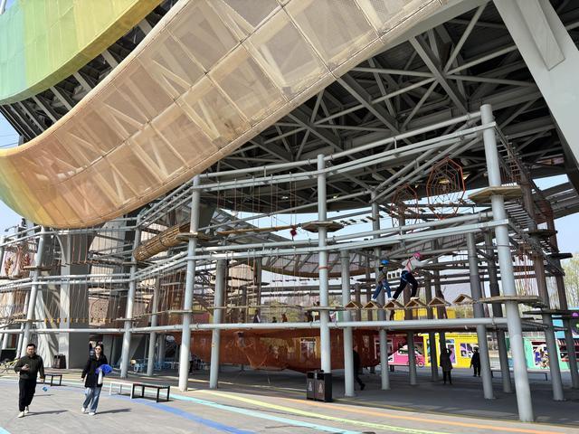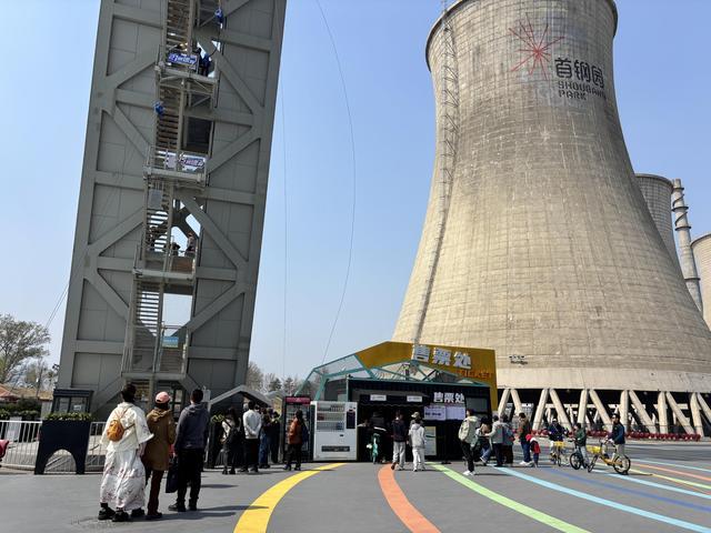 紧挨着永定河集,首钢滑雪大跳台区域同样热闹非凡。走进大跳台广场区,“顽酷心跳塔”不时传来尖叫声和欢呼声,跳台矩阵、魔网、攀岩等探险项目是孩子们的最爱,绳降、速降等项目吸引极限运动爱好者前来挑战。40米高的空中观景平台和地面餐桌上,游客不约而同地举起“心跳咖啡”品尝。